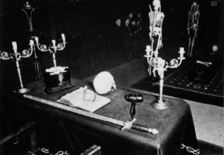 Ein einfacher, schwarz ausgeschlagener Raum, in dem sich ein Tisch mit einer aufgeschlagenen Bibel, ein Kerzenleuchter, ein S...., ein Stundenglas und ein Totenkopf befinden. Dieser Raum dient zur Aufnahmevorbereitung. Zum besseren Verständnis wird auch die Aufnahmezeremonie