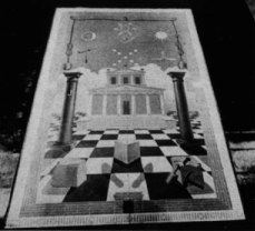 Die drei Zieraten sind dem jüdischen National-Heiligtum, dem Tempel Salomos entnommen. Dieser Tempel ist für den Freimaurer in seiner moralischen Bedeutung als der Tempel seines Inneren gedacht, "der durch gemeinsames Schaffen und Bauen" dieses Bundes auszugestalten ist. (Siehe Br. Otto Hieber "Der Johannislehrlingsgrad" 1919). 1. Das musivische Pflaster bildet die Grundfeste des Tempels und soll das feste Gefüge und die Unsterblichkeit des Freimaurerbundes darstellen. 2. Der flammende Stern (Pentagram) versinnbildlicht "das ewige Feuer", das im Tempel Salomos zu Jerusalem brannte, an dem das Licht angezündet wurde, das seine übrigen Räume erleuchtete. 3. Das Vereinigungsband ist die Kordel, welche den Vorhang vor dem Allerheiligsten